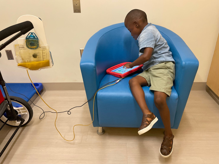 These are a few pics of Ayden's first week at the Center for Advanced Pediatrics (CAPs Building) during his breaks. I got caught taking pics of Ayden in the treatment room while receiving care, and I had to delete the photos. Sorry, no pictures of the staff with him while receiving treatment.